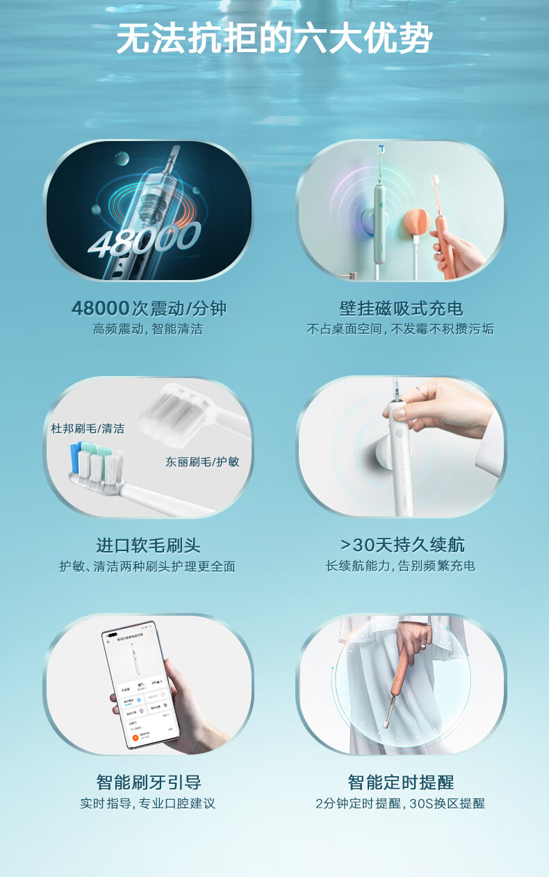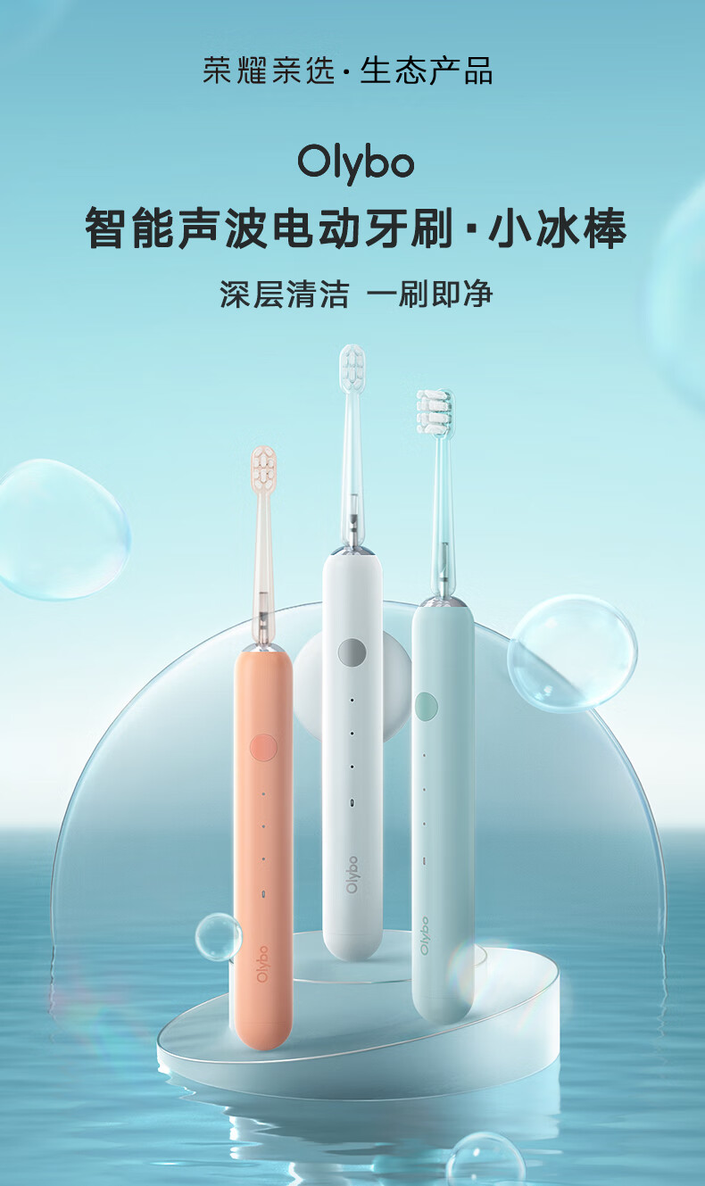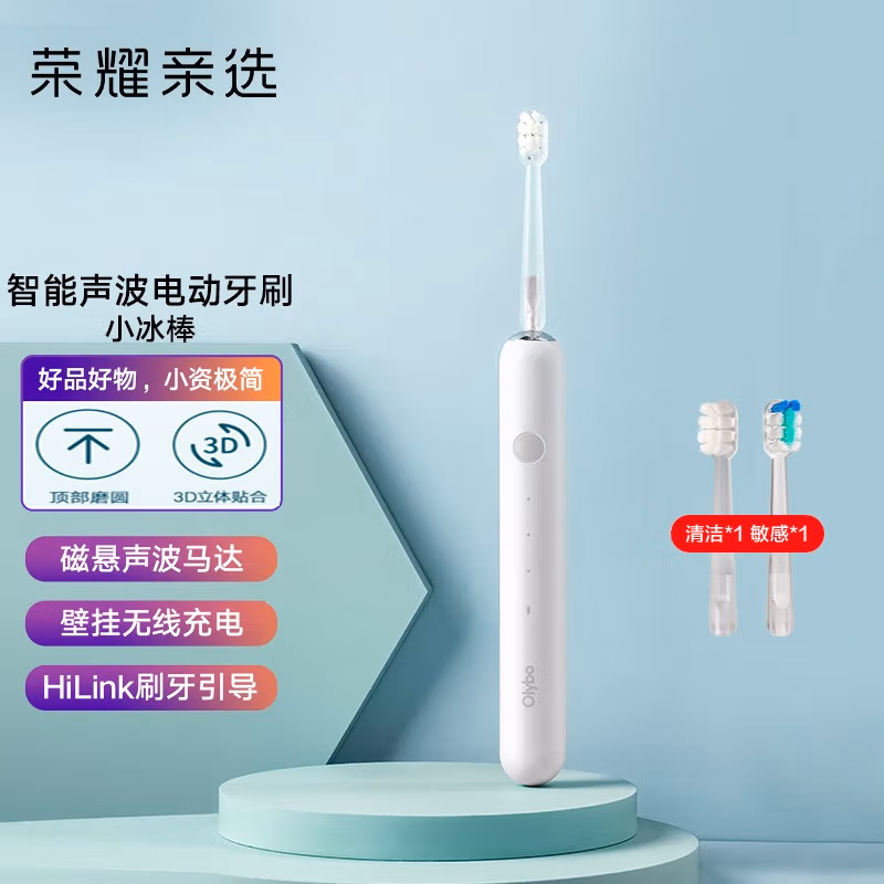 荣耀亲选智能声波电动牙刷小冰棒 支持HUAWEI Hilink 智能定时提醒 壁挂磁吸式充电 持久续航 冰川白 自营