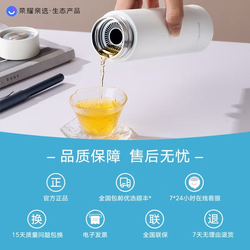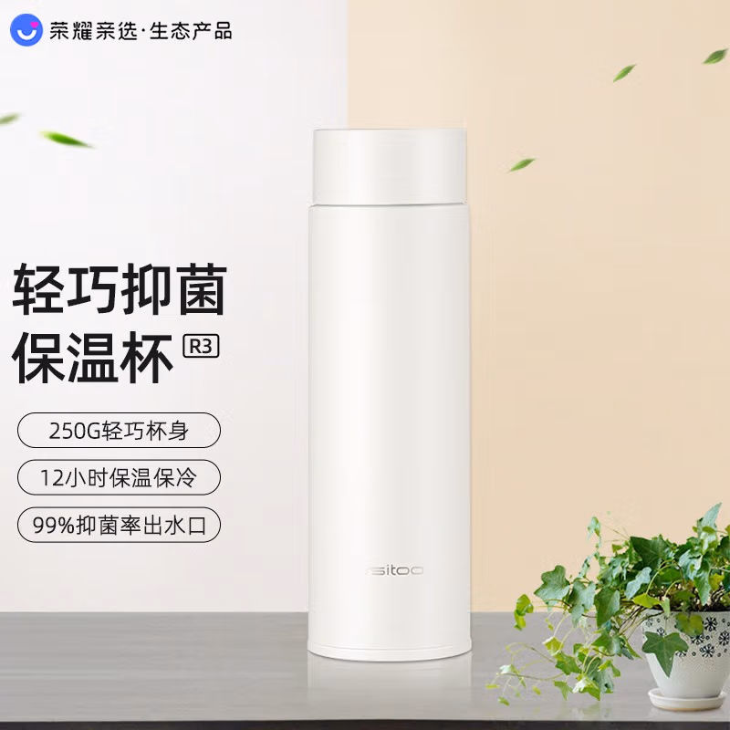 荣耀亲选 轻巧抑菌保温杯保冷杯泡茶 旅行便携大容量学生316不锈钢内胆男女外出车载 送礼品水杯 象牙白 自营
