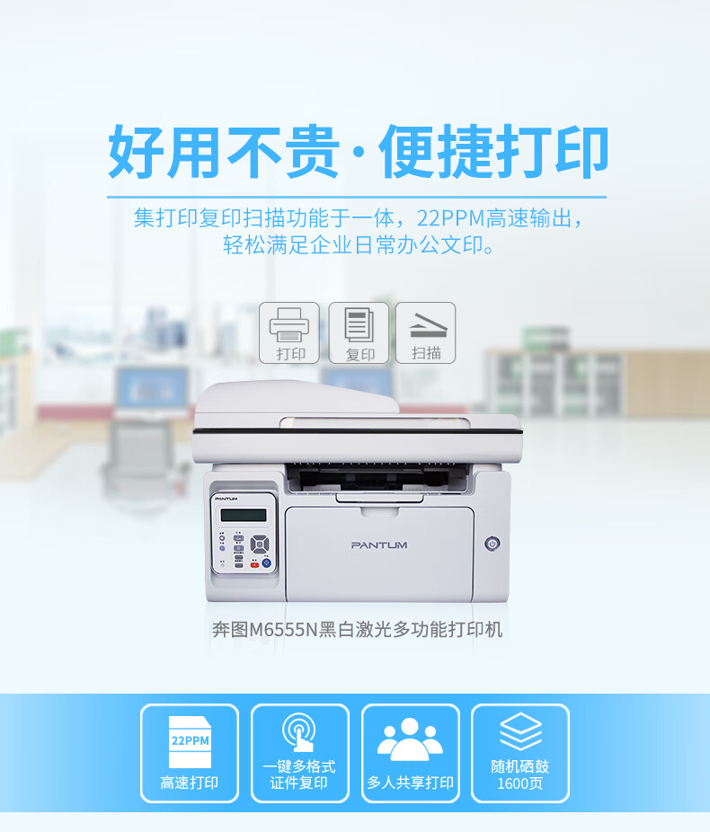 奔图(Pantum)M6555N A4黑白激光多功能一体机(打印/复印/扫描) 自营