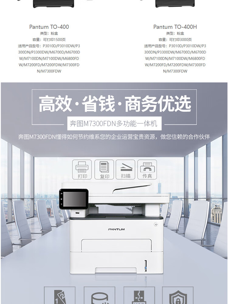 奔图(PANTUM)M7300FDN黑白激光多功能四合一打印机 自营