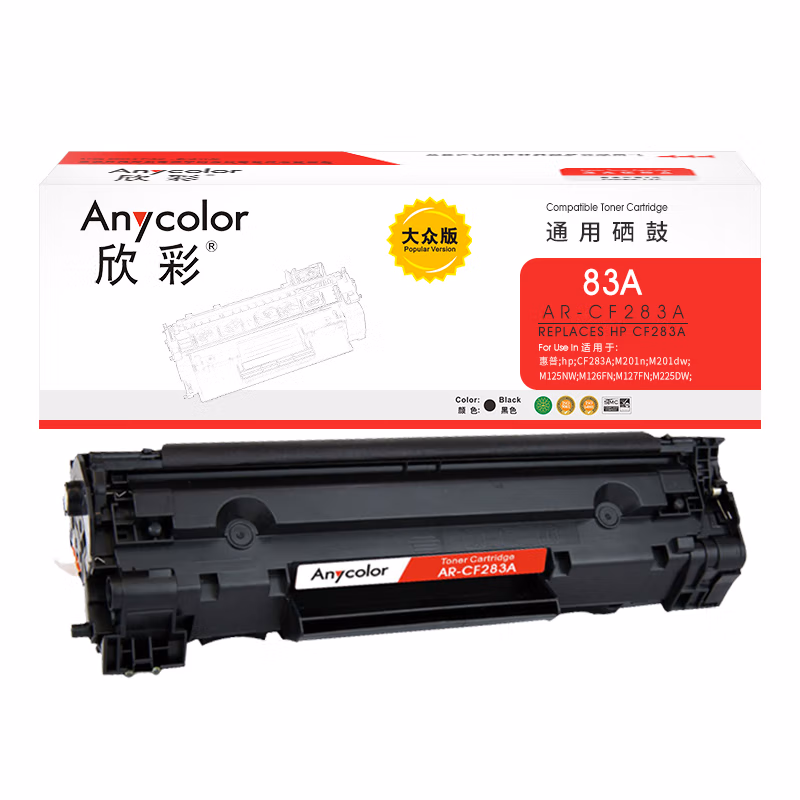 欣彩 AR-CF283A硒鼓 大众版 CF283A 83A适用惠普HP M125 M125FW M125A M201 M225MFP黑色一支 自营