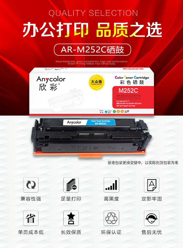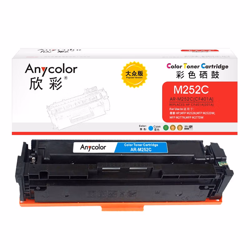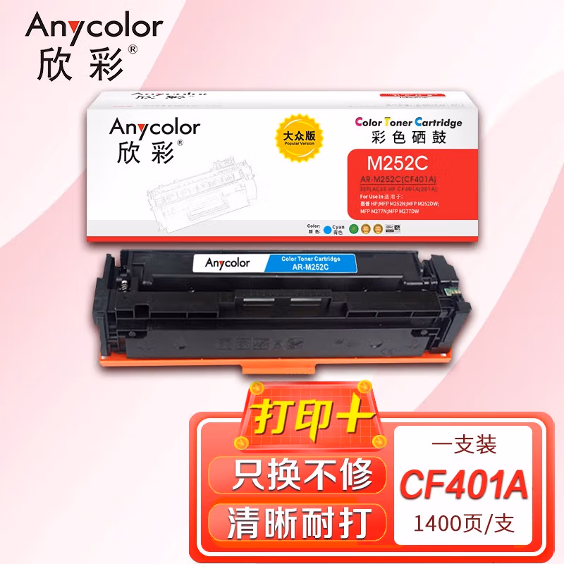欣彩 AR-M252C 大众版 CF401A/201A 1.4K蓝色硒鼓 适用惠普HP Color LaserJet Pro M252N M252DW蓝色一支 自营