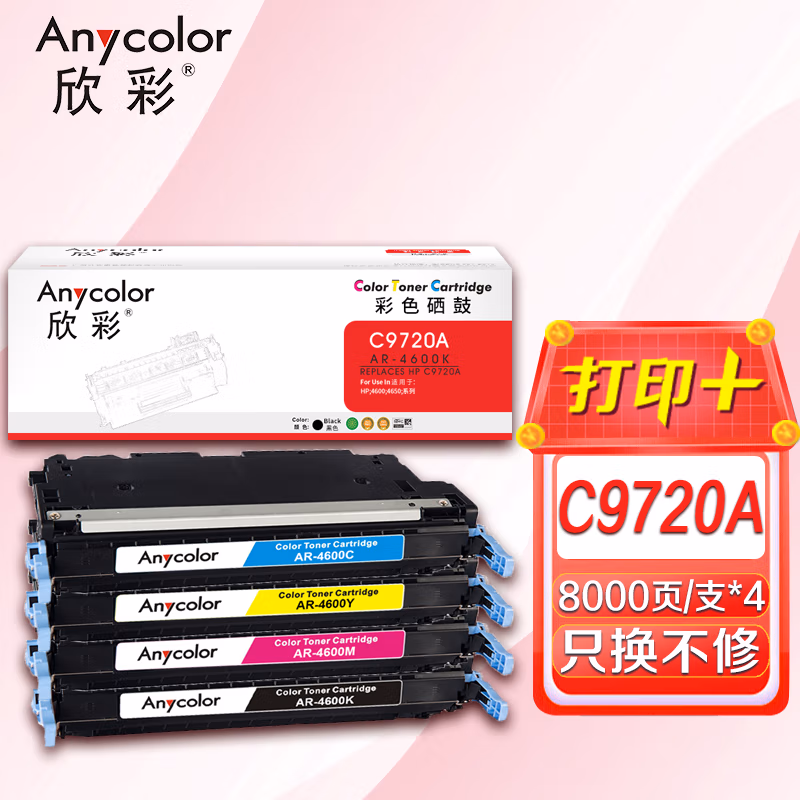 欣彩 C9720A/641A硒鼓套装 黑/蓝/红/黄四色 适用惠普HP 4600 4650系列 打印机彩色四支 自营