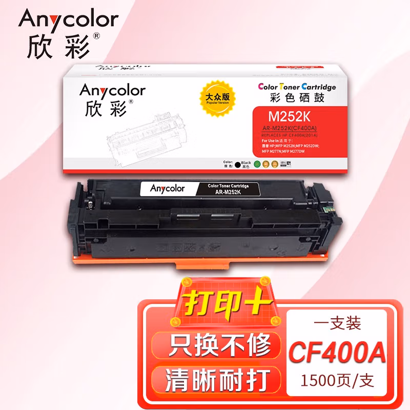 欣彩 CF400A 大众版 AR-M252K 201A 1.5K黑色硒鼓 适用惠普HP Color LaserJet Pro M252N M252DW黑色一支 自营