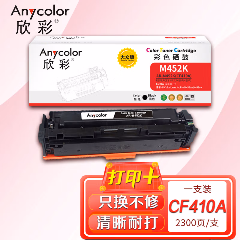 欣彩 CF410A 硒鼓 大众版 AR-M452K黑色 适用惠普HP M377dw M452dw M452nw MPF M477fdn M477fdw 黑色一支 自营