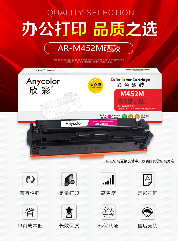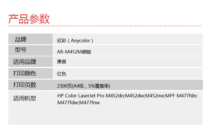 欣彩 硒鼓 大众版 AR-M452M红色 适用惠普HP M377dw M452dw M452nw MPF M477fdn M477fdw M477fnw红色一支 自营