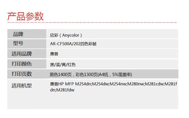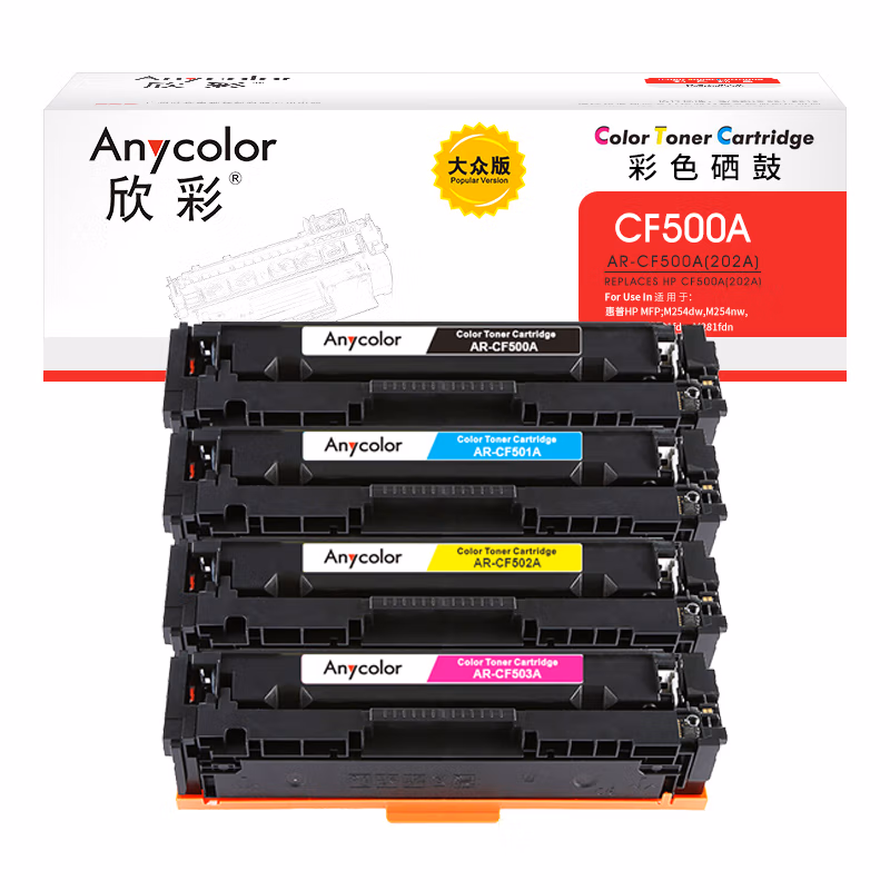 欣彩 CF500A/202A彩鼓套装 大众版 501 502 503硒鼓 适用惠普HP MFP M254dn M254dw M254nw彩色四支 自营