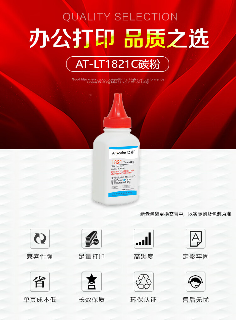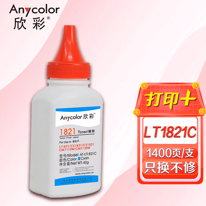 欣彩碳粉 AT-LT1821C蓝色 40g适用联想LT1821粉盒CS1831墨粉CS1821 CM7110W碳粉CM7120W打印机硒鼓蓝色一支 自营