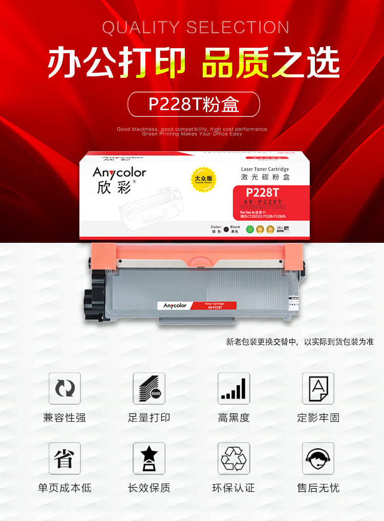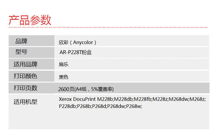 ¥260.00欣彩 P228b粉盒 大众版 AR-P228T黑色墨粉盒 2.6K 适用施乐CT202331 P228b P228db P268d M268dw黑色一支