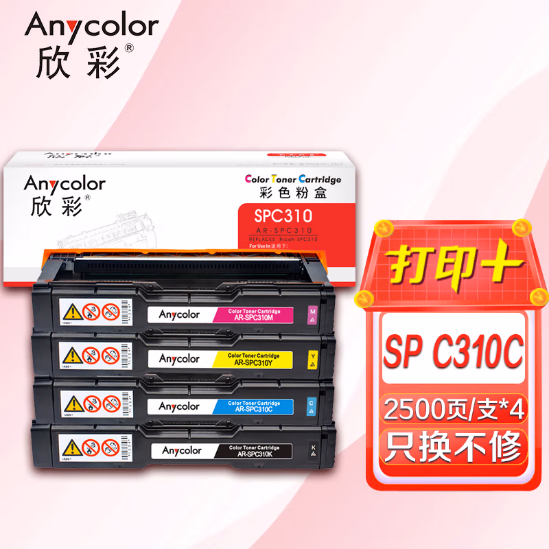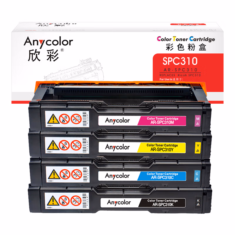 欣彩 型粉盒套装 SPC310黑/蓝/红/黄四色 适用理光SP C231SF C232SF C242DN SF C310 C311N C312DN彩色四支 自营
