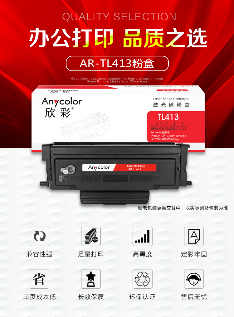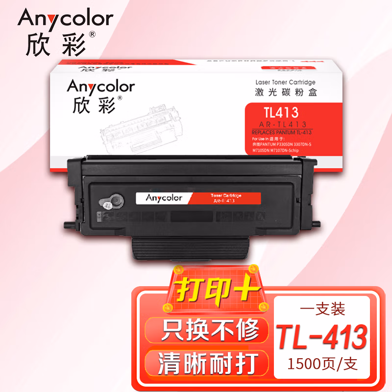 欣彩 TL-413粉盒 AR-TL413 1.5K 适用奔图PANTUM P3305DN 3307DN-S M7105DN M7107DN-Schip黑色一支 自营