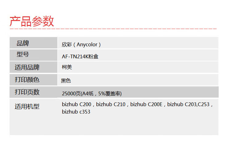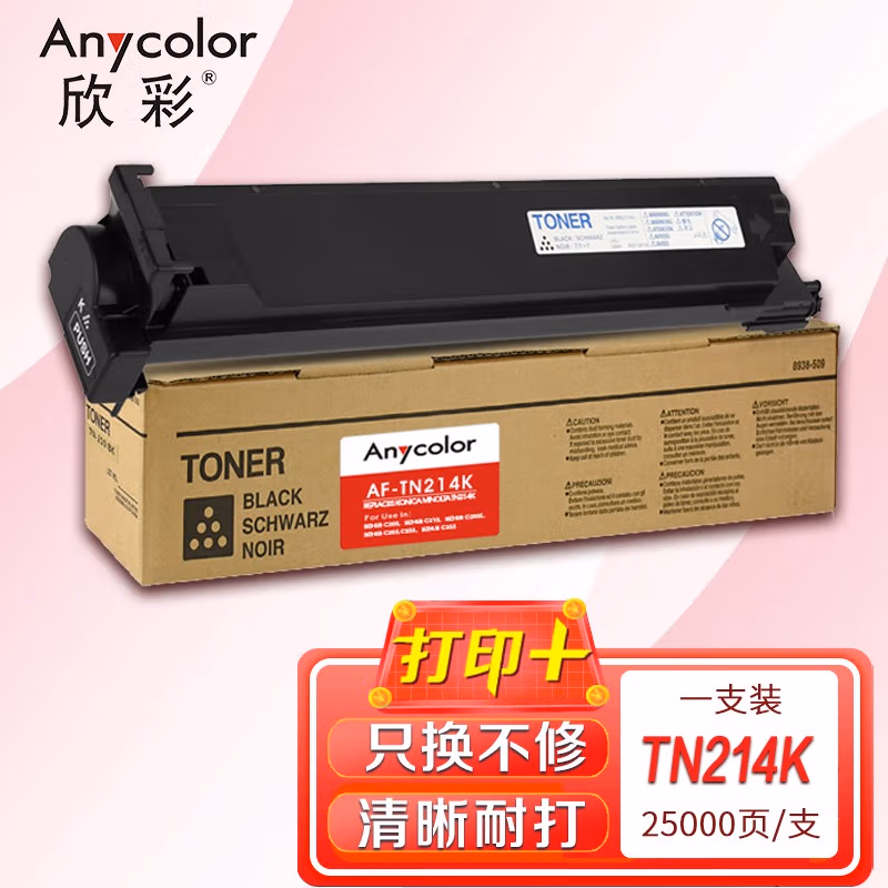 欣彩 TN214墨粉盒 AF-TN214K黑色大容量 适用柯尼卡美能达bizhub C200 bizhub C210 bizhub C200E黑色一支 自营