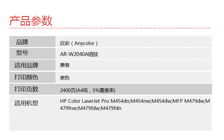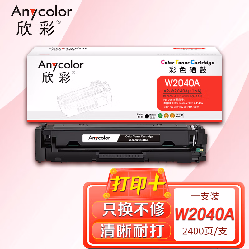 欣彩 W2040A硒鼓 AR-W2040A黑色 416A带芯片 适用惠普M454dn M454nw M479dw M479fnw fdw fdn黑色一支 自营