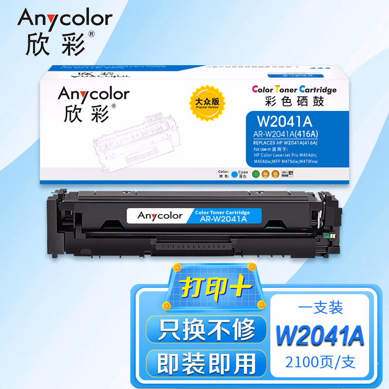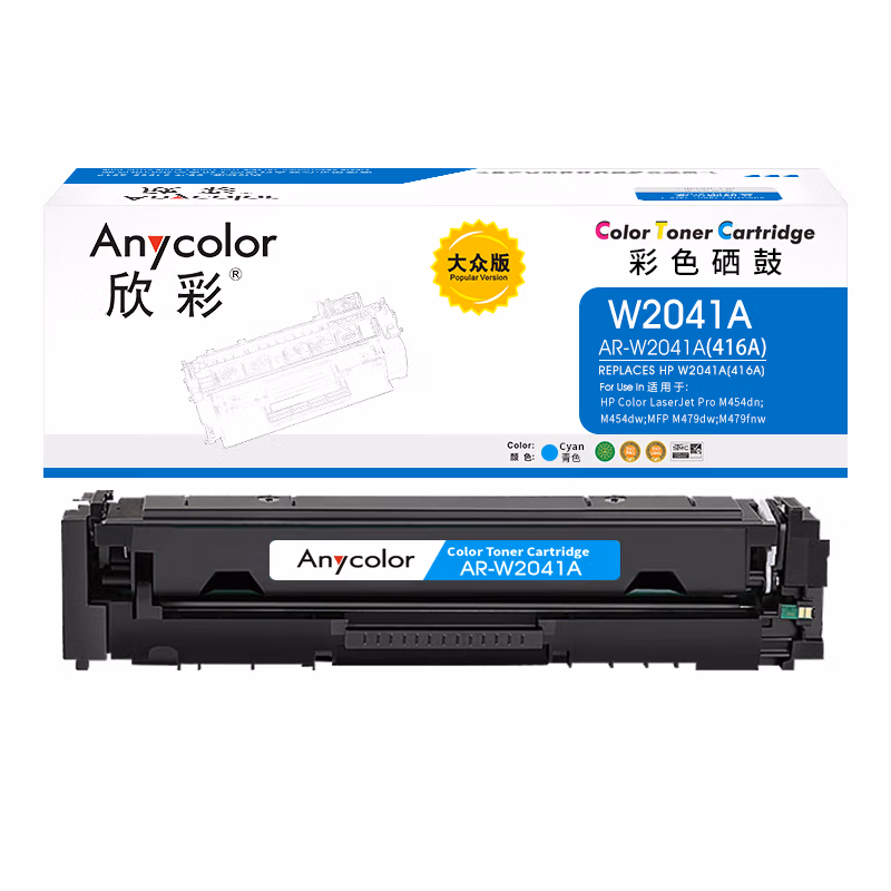欣彩 W2041A硒鼓 AR-W2041A蓝色 416A不带芯片 适用惠普M454dn M454nw M479dw M479fnw fdw fdn蓝色一支 自营