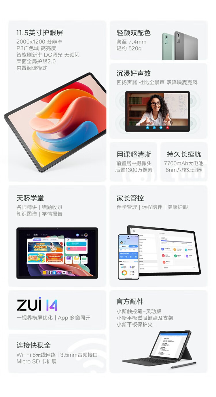 联想(Lenovo) 平板电脑小新Pad安卓平板二合一 网课学习学生办公全面屏 小新pad Plus 6G+128G 11白色 自营