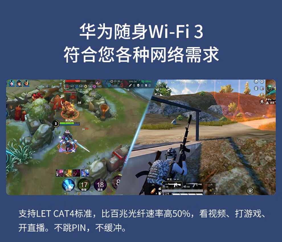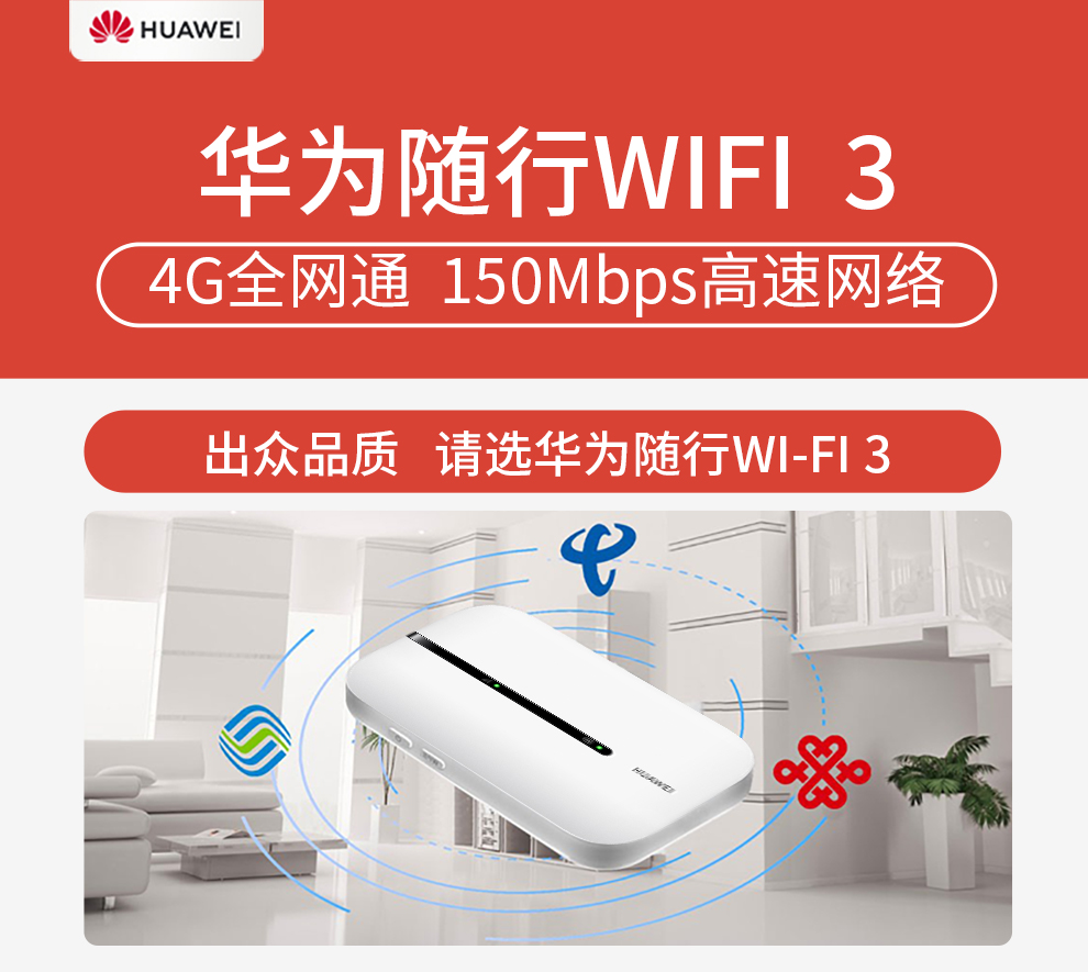 ¥399.00华为随行WiFi 3 Pro 天际通版 4G+全网通 随身wifi /300M高速上网/3000mAh大电池 E5783-836 赠5GB流量