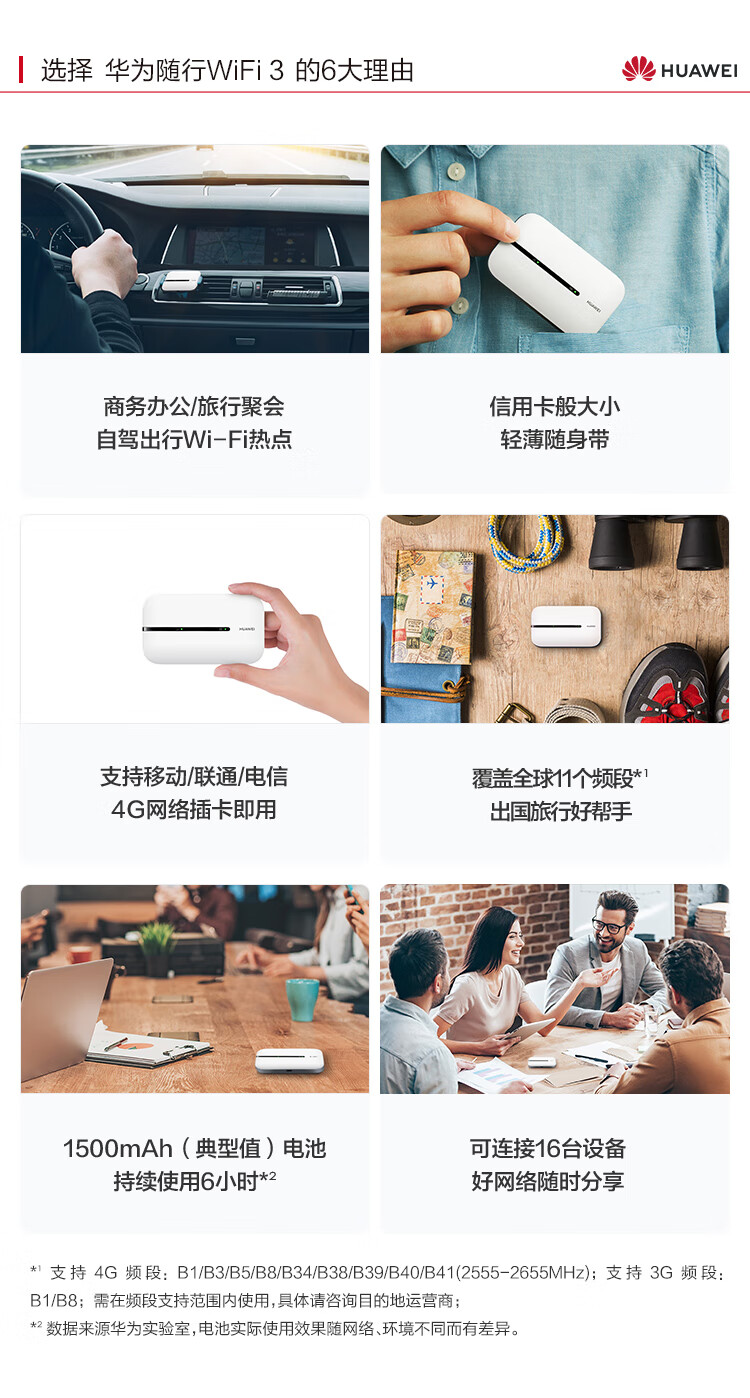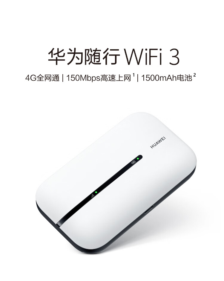 华为(HUAWEI)随行随身WiFi3插卡 4g全网通无线路由器流量热点车载无线上网卡E5576-855白色 自营
